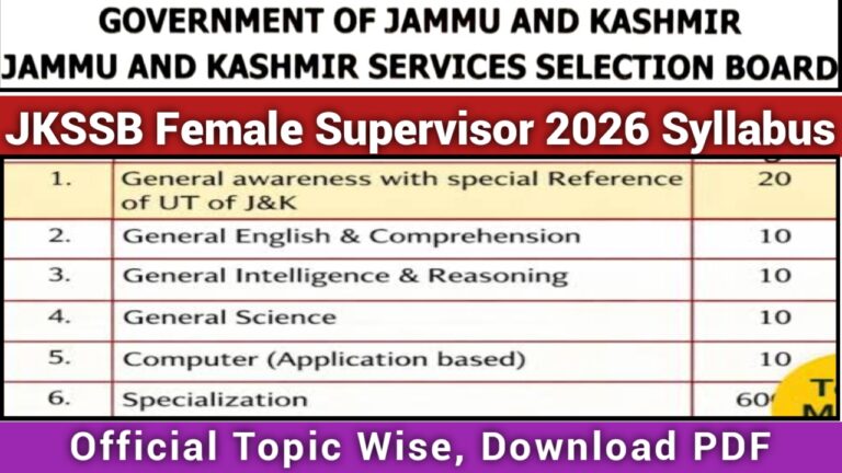 JKSSB Female Supervisor 2026 Syllabus: The Jammu and Kashmir Service Selection Board is inviting online applications from eligible female candidates …